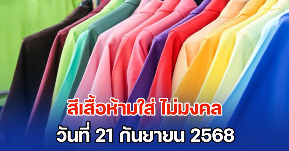 ดูเอาไว้นะ! สีเสื้อห้ามใส่ ไม่มงคล วันที่ 21 กันยายน 68 (ความเชื่อส่วนบุคคล)