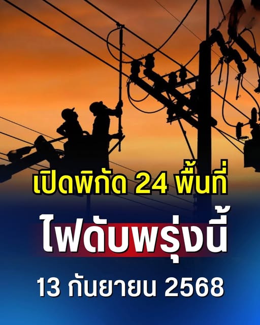 เปิดพิกัด 24 พื้นที่ ไฟดับพรุ่งนี้ 13 กันยายน 2568