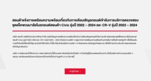 ล่าสุด ฮอนด้า ประเทศไทย ได้ประกาศผ่านเว็บไซต์ว่า ฮอนด้า แจ้งการเตรียมความพร้อมเกี่ยวกับการเรียนเชิญรถยนต์เข้ารับการบริการตรวจสอบ ชุดแร็คพวงมาลัยในรถยนต์ฮอนด้า Civic รุ่นปี 2022 -2024 และ CR-V รุ่นปี 2023-2024